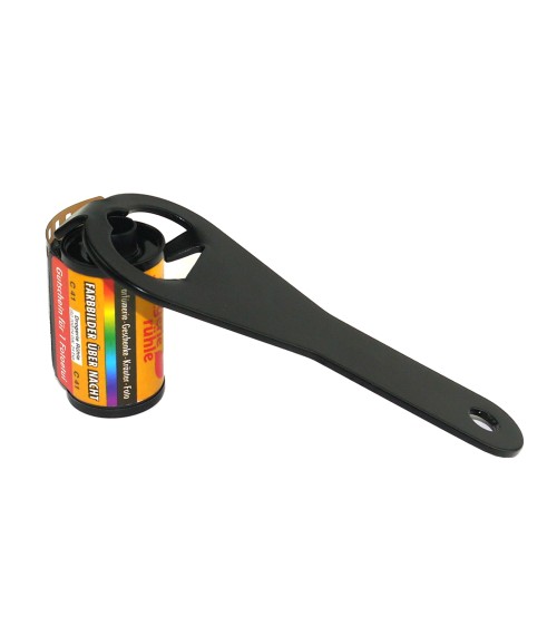 Esta herramienta te permite abrir el chasis de carretes de películas de 35mm para extraerlas para su revelado. Su funcionamiento es similar al de un abridor de botellas.