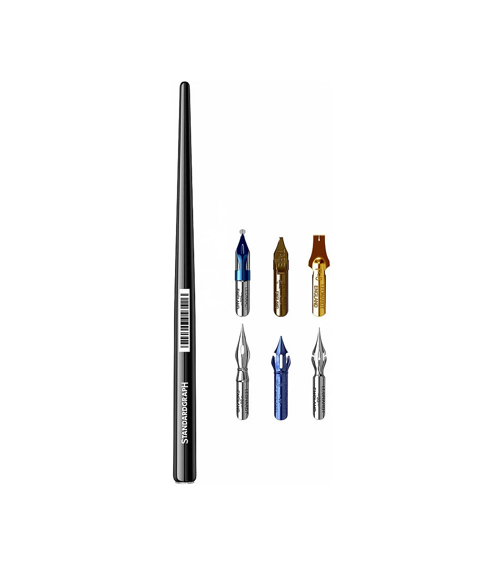 Este set se compone de un portaplumas y 6 plumillas de diferentes estilos.